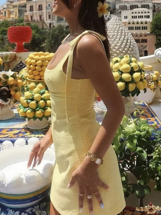 Gingham Tie-Shoulder Mini Dress